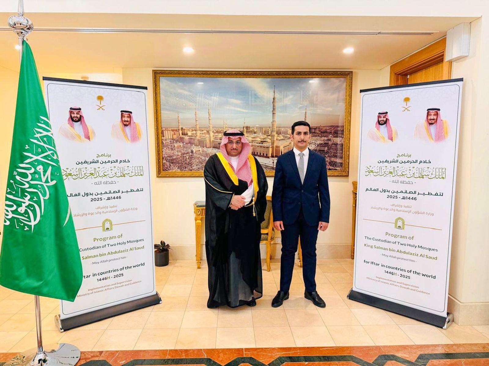 أقامت وزارة الشؤون الإسلامية، ممثلة بمكتب الدعوة في سفارة المملكة لدى أستراليا، غرة شهر رمضان 1446هـ، حفلًا لتنفيذ برنامج خادم الحرمين الشريفين لتفطير الصائمين، بحضور سعادة سفير خادم الحرمين الشريفين الأستاذ سلطان بن خزيم وسعادة نائب سفير خادم الحرمين الشريفين لدى أستراليا الأستاذ عبد العزيز هاشم عبده، ورئيس مجلس الأئمة في أستراليا الشيخ آدم كوندا وعدد من المسؤولين والأكاديميين والشخصيات ورؤساء المؤسسات والجمعيات الإسلامية في أستراليا.