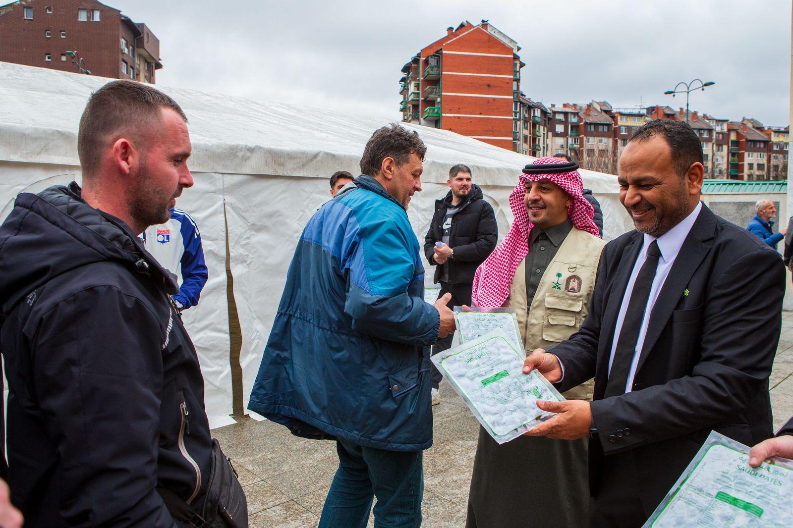 في مشهد يجسد أسمى معاني الأخوة الإسلامية ويعكس حرص المملكة العربية السعودية على مد جسور العطاء إلى المسلمين في شتى بقاع الأرض، وزعت وزارة الشؤون الإسلامية والدعوة والإرشاد، ممثلةً بالملحقية الدينية في سفارة خادم الحرمين الشريفين بالبوسنة والهرسك، هدية خادم الحرمين الشريفين الملك سلمان بن عبدالعزيز – حفظه الله – من التمور الفاخرة على المصلين في مسجد الملك فهد بالعاصمة البوسنية سراييفو، الذي يعد من أكبر مساجد منطقة البلقان، حيث يستوعب أكثر من 5000 مصلٍ.