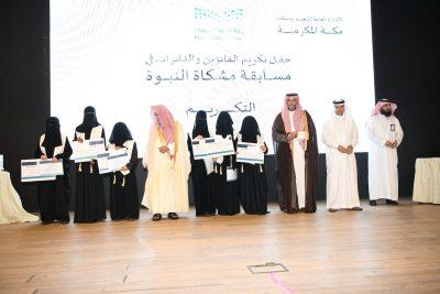 وفي ختام الاحتفال كرم معالي الشيخ الدكتور صالح بن حميد والمدير العام للتعليم بمنطقة مكة المكرمة الفائزين والفائزات في المسابقة بجوائز نقدية وهدايا قيّمة كما تم تكريم أعضاء اللجان المحكمة والمنظمة بجوائز ، والتقطوا الصور التذكارية.