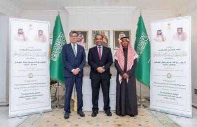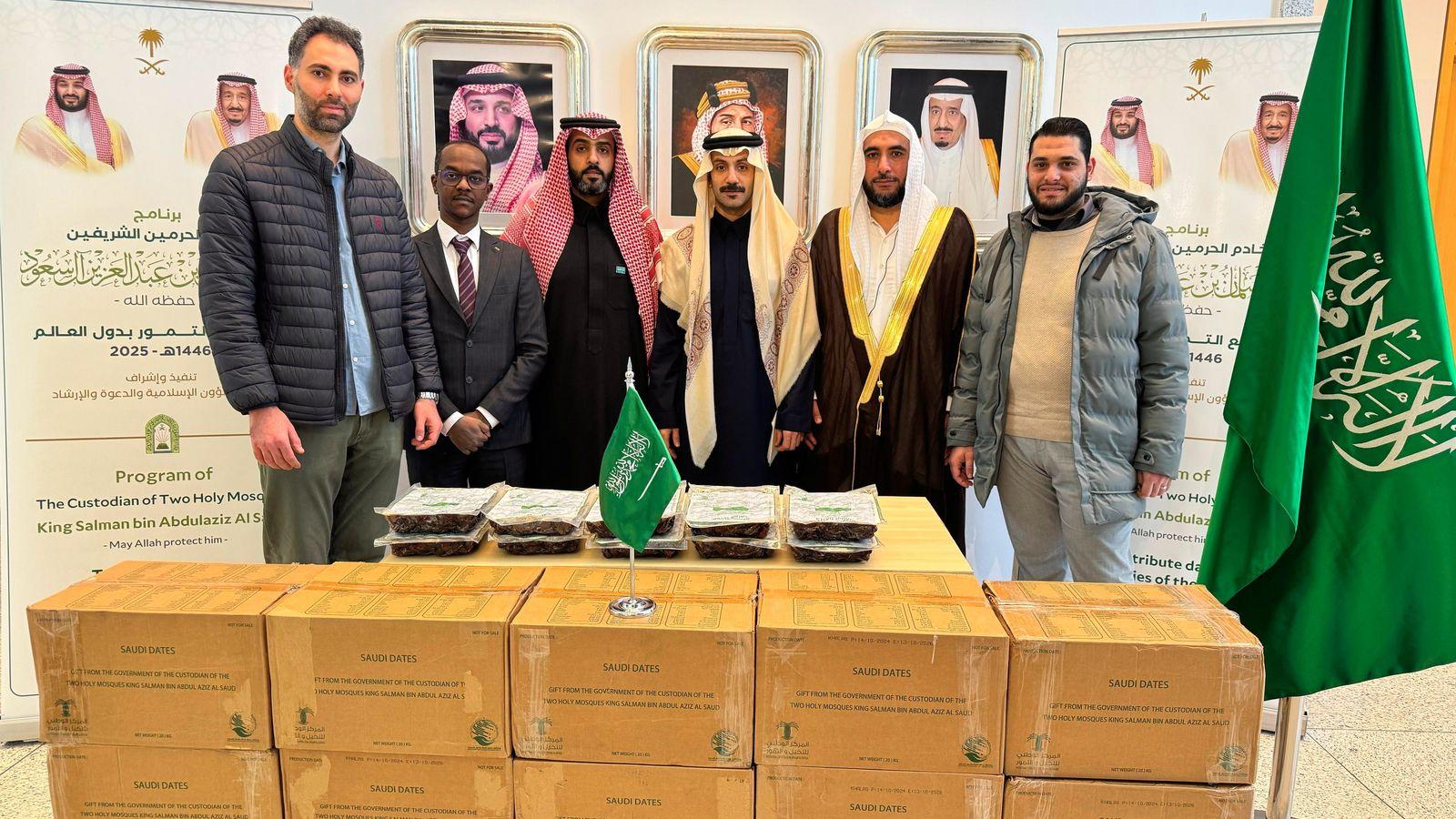 أما في ألمانيا تم تنفيذ برنامج خادم الحرمين الشريفين لتوزيع التمور في الرابع عشر من شهر رمضان 1446هـ، في مقر سفارة المملكة السعودية في العاصمة الألمانية برلين، بحضور سعادة نائب رئيس البعثة فهد بن هذال الهذال، ورئيس وحدة الشؤون الإسلامية الاستاذ عمار بن عبدالخير المولد، وإمام مسجد بلال سامح البنهوتي، ومندوب المركز الثقافي للحوار والتأهيل احمد أبو دي، ومندوب دار السلام أنس السامرائي.