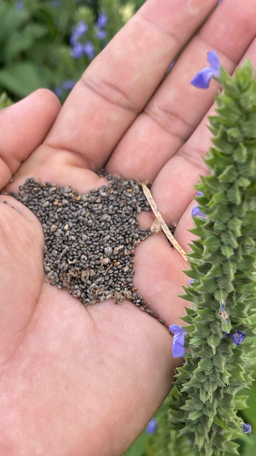 وتنتمي نبتة الشيا المعروفة علميًا باسم (Salvia hispanica) إلى عائلة النعناع وموطنها الأصلي أمريكا الوسطى، وكانت غذاءً أساسيًا لشعوب المايا والأزتيك، وتُعرف بكونها دائمة الخضرة، ذات أزهار صغيرة تتدرج ألوانها بين الأرجواني والأبيض، وتتميز بمعدل تلقيح مرتفع، وقدرتها العالية على الامتصاص لتكوين جلّ عند مزجها بالماء بما يصل إلى 12 ضعف وزنها من الماء، مما يجعلها مفيدة في العديد من التطبيقات الغذائية والصحية، ويصل ارتفاعها إلى نحو متر واحد، بينما تتراوح إنتاجية الهكتار الواحد بين 800 إلى 1200 كجم من البذور، كما أن الشيا تعتبر من المحاصيل غير التقليدية، حيث تتميز بسرعة النمو، إذ تستغرق 130 يومًا فقط في التربة، مع استهلاك معتدل للمياه، مما يجعلها خيارًا مثاليًا للزراعة في البيئة المحلية.