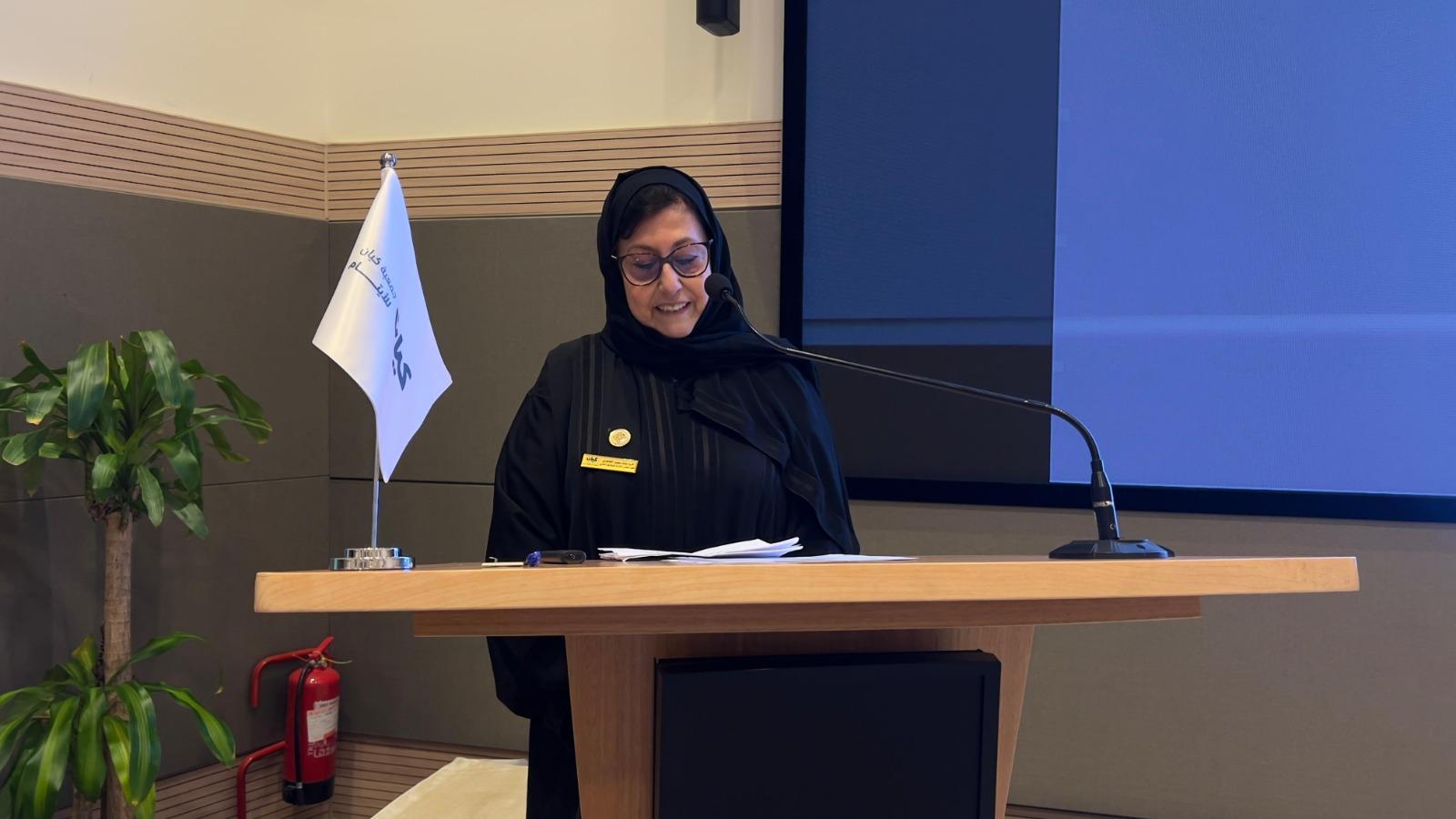 وقالت: يشرفني نيابة عن مجلس الإدارة أن أرحب بكم في اجتماع الجمعية العمومية التاسع الذي خصص لانتخابات مجلس الإدارة للدورة الثالثة. ويسرني أن أرحب بلجنة الانتخابات برئاسة الأستاذ أحمد المحيميد وعضوية الأستاذة مرفت السجان والأستاذة ساره الدحام. وحمدت الله الذي يسر إكمال الدورة الثانية للمجلس حيث قيض الله لجمعية كيان للأيتام خلال هذه الدورة انضمام هذه النخبة من المجتمع لعضويتها ومساهماتهم القيمة بالمشاركة في اللجان أو الدعم المعنوي والمادي مما كان له أكبر الأثر على نوعية البرامج والأنشطة التي تلبي احتياج المستفيد وتحقق تطلعاته.