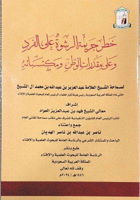 ضمن الجهود العلمية والتوعوية التي تقوم بها في ضوء رسالتها وأهدافها الاستراتيجية في تعزيز ثقافة المعرفة أًصدرت الرئاسة العامة للبحوث العلمية والإفتاء كتابا بعنوان خطر جريمة الرشوة على الفرد وعلى مقدرات الوطن ومكتسباته لسماحة الشيخ عبدالعزيز بن عبدالله بن محمد آل الشيخ مفتي عام المملكة ورئيس هيئة كبار العلماء الرئيس العام للبحوث العلمية والإفتاء.