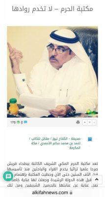 وردنا هذا التعقيب من الرئيس التنفيذي للهيئة العامة للعناية بالحرمين الشريفين الأستاذ غازي الشهراني تعقيبا على المقال الذي كتبه كاتب الصحيفة الصحفي -أحمد الأحمدي تحت (عنوان) مكتبة الحرم لا تخدم روادها.