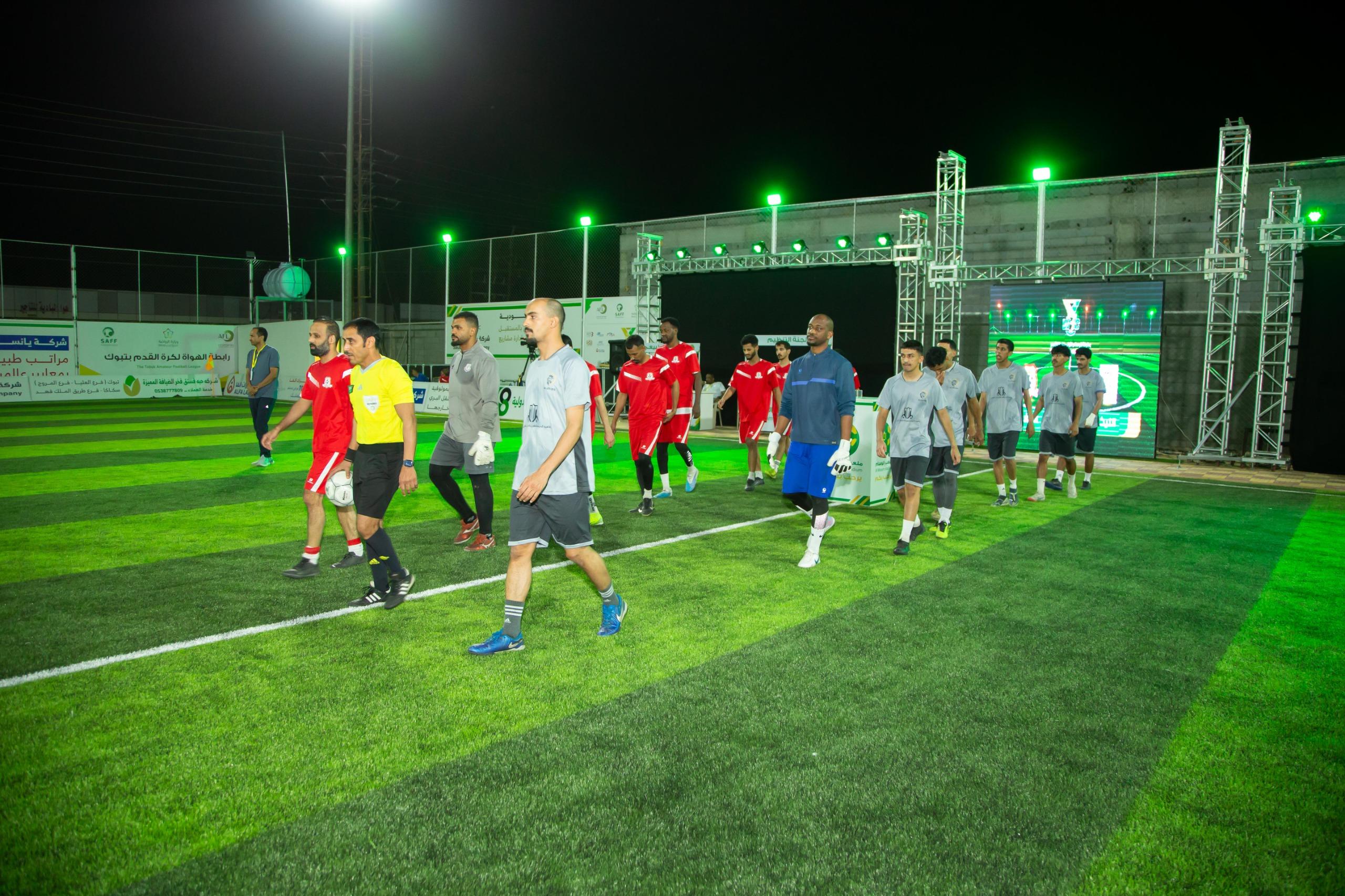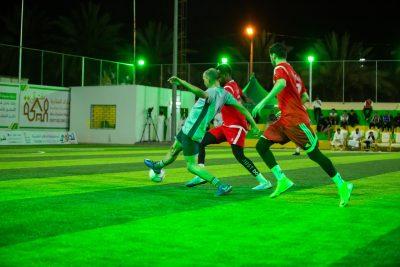 كما اقيمت لنفس المجموعة المباراة الثانية او ديربي المجموعة كما يطلق عليها بين فريقي الصفوة و فريق الليث وسط تنافس كبير بينهما لما يضمه الفريقان من لاعبين اصحاب خبرات وبينهم تحدى على كسب اللقاء قبل بدايته حيث تمكن فريق الصفوة من الفوز على الليث بنتيجة كبيرة وغير متوقعة ( 2/5) وكانت المباراة التي أدارها الحكم المميز احمد المالكي قد شهدت عند الدقيقة 18 تسجيل فريق الليث لهدفه الاول عن طريق مهاجمه باسم منادي بكرة راسية جميلة حيث ظل اللعب متكافئ بين الفريقين طوال أغلب دقائق الشوط الاول الي ان تمكن هداف فريق الصفوة فارس المالكي من تسجيل هدف التعادل لفريقه عند الدقيقة 23 بعد ذلك بقي اللعب فرص متبادلة وحماس بين الفريقين الي ان تحصل لاعب الصفوة احمد قابي على ركلة جزاء بعد إعاقته داخل منطقة الجزاء حيث قام هداف الفريق والبطولة حتي الان فارس المالكي بتنفيذها على يسار حارس الليث سعود الخيبري وذلك في الوقت بدل الضائع والمحتسب من قبل حكم المباراة المالكي بست دقائق وبذلك يسجل الهداف فارس المالكي الهدف الثاني له بالمباراة والخامس له بالبطولة حيث اعلن الحكم نهاية الشوط الاول بتقدم الصفوة بهدفين لهدف.