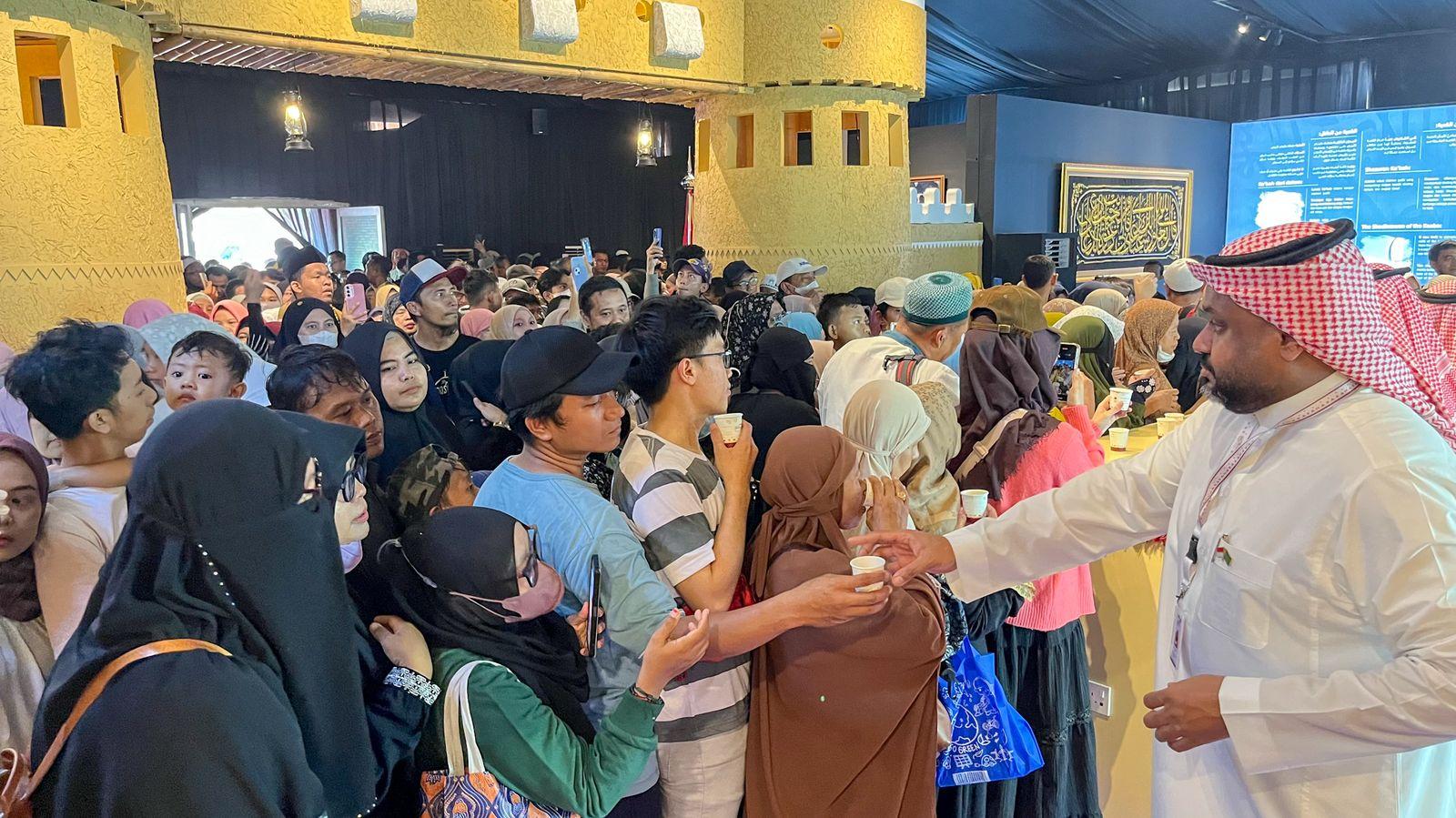 وقد بدأ توافد الزوار منذ ساعات الصباح الأولى، حيث اصطف المئات أمام أبواب المعرض منذ الساعة الثامنة صباحاً، في مشهد يعكس مكانة المملكة العربية السعودية ومكانة الحرمين الشريفين في قلوب المسلمين الإندونيسيين.