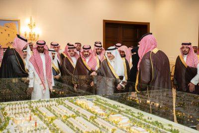 كما اطلع سموه والحضور على مجسم لواجهة فالي تبوك والتي تقع على مساحة إجمالية تقدر بـ 778 ألف متر مربع تتضمن 874 وحدة سكنية و4 مساجد وجوامع و5 حدائق ومنتزهات وعدد 5 مراكز تجارية ومجمعات تعليمية تحتوي على 5 مدارس.