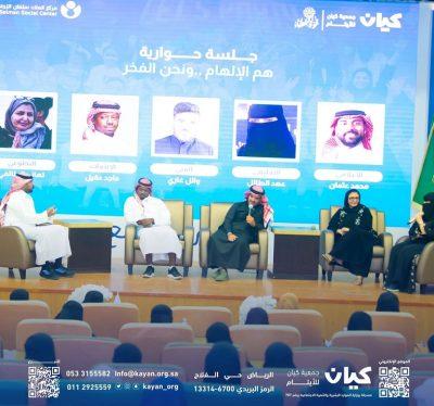 واستكمل البرنامج بفقرة لحظة استثنائية بعنوان ” هنا تبدأ الحكاية ” ثم جلسة حوارية بعنوان “هم الإلهام ونحن الفخر” شارك فيها عدد من أبناء وبنات كيان المتميزين. وفي الختام تم تكريم جميع المشاركين والمتميزين والمبدعين والمتحدثين على المسرح.