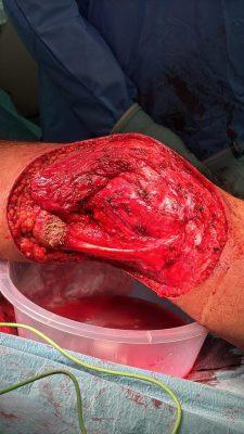 وأوضح تجمع مكة المكرمة الصحي: بأنه خلال شهرين، بدأ الورم في النمو السريع حتى بلغ حجمه 25 سم، مصحوبًا بخروج دم وصديد، مما استدعى التدخل الطبي العاجل. وقد تم استقبال الحالة وإجراء فحوصات دقيقة، وأخذ عينة أظهرت أن الورم غير حميد، ليتم على إثرها إدخال المريض إلى غرفة العمليات.