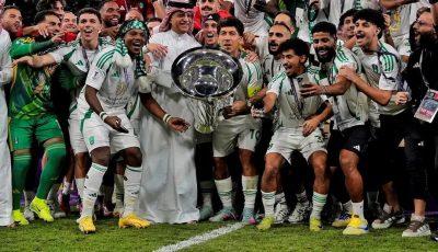 وتُوج معالي رئيس الاتحاد الآسيوي لكرة القدم الشيخ سلمان آل خليفة، فريق الأهلي السعودي بكأس البطولة، بحضور معالي نائب وزير الرياضة الأستاذ بدر بن عبدالرحمن القاضي ورئيس الاتحاد السعودي لكرة القدم ياسر بن حسن المسحل.