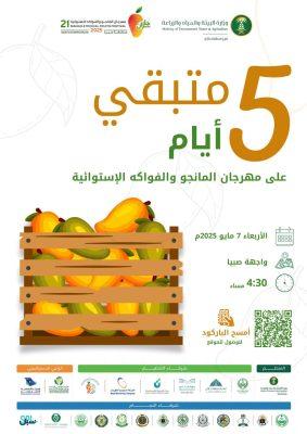 يشارك المركز الوطني لتطوير أبحاث الزراعة المستدامة “استدامة” كشريك استراتيجي في مهرجان مانجو جازان21، والذي سيقام في محافظة صبيا بمنطقة جازان، إعتباراً من يوم الأربعاء القادم 7 مايو 2025 ،والذي تنظمه وزارة البيئة والمياه والزراعة ممثلة بفرعها بالمنطقة، وتمثل هذه الشراكة استمراراً لمساهمات المركز في دعم المحاصيل الاقتصادية ذات الميز النسبية في منطقة جازان . يأتي ذلك من خلال تنفيذ الأبحاث التطبيقية وتطوير الممارسات الزراعية الجيدة.