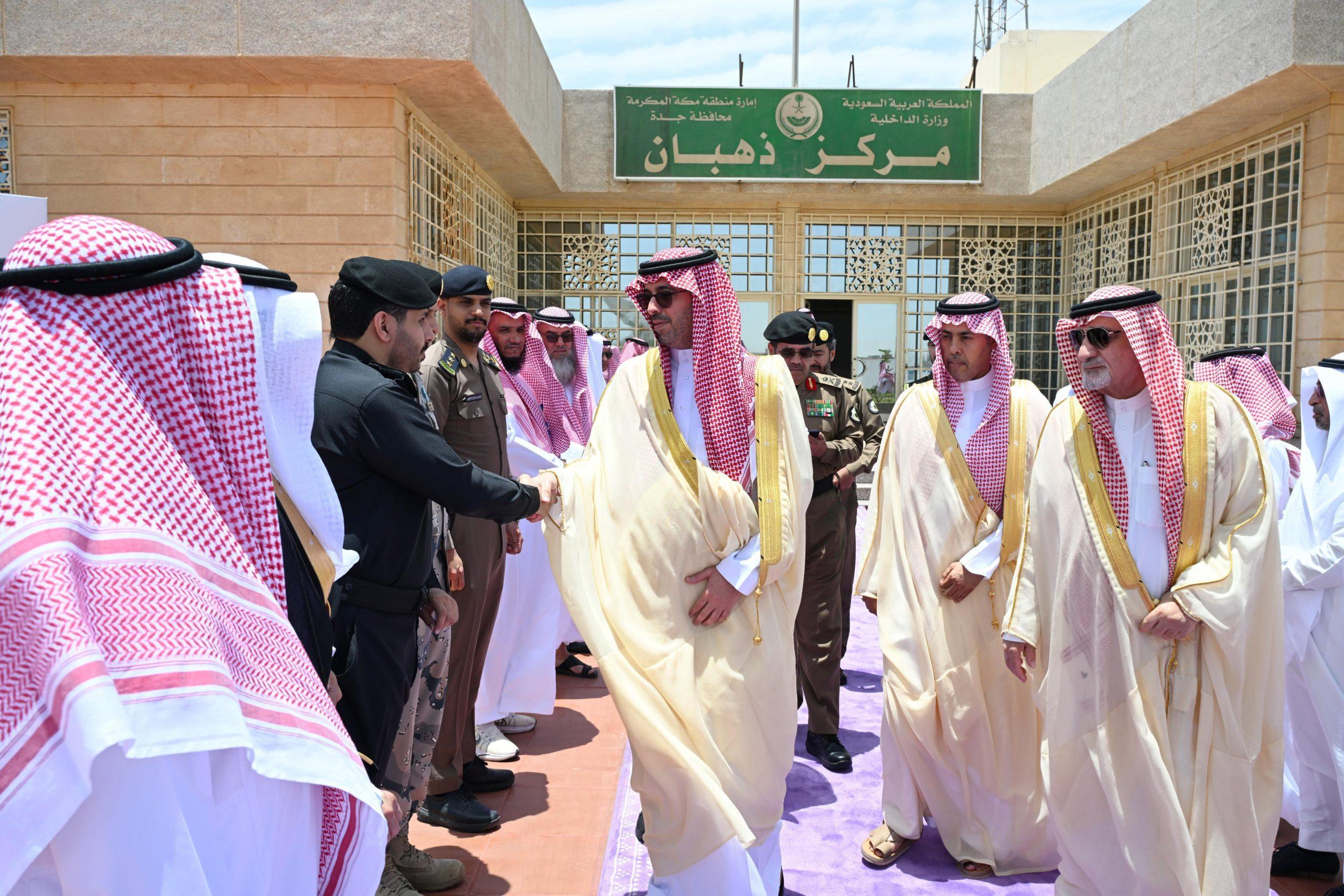 بتوجيه من صاحب السمو الملكي الأمير خالد بن فيصل بن عبدالعزيز مستشار خادم الحرمين الشريفين أمير منطقة مكة المكرمة، ومتابعة صاحب السمو الملكي الأمير سعود بن مشعل بن عبدالعزيز نائب أمير منطقة مكة المكرمة، تفقد صاحب السمو الأمير سعود بن عبدالله بن جلوي مُحافظ جدة، مركز ذهبان التابع للمحافظة، يرافقه معالي أمين محافظة جدة صالح التركي، ومدير شرطة المحافظة اللواء سليمان بن عمر الطويرب، ومدير مرور المحافظة اللواء أحمد بن مساعد السريحي، وعددٌ من مديري القطاعات الحكومية والأمنية؛ لمتابعة سير العمل بالمركز والخدمات المقدمة للأهالي.