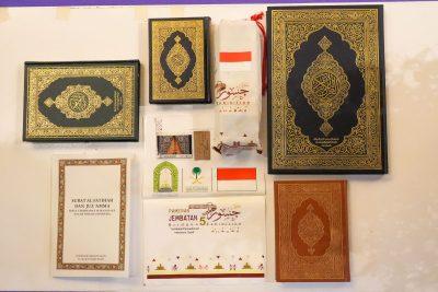 فقد تنوعت الهدايا المقدمة للزائرين بين نسخ فاخرة من المصحف الشريف بعدة مقاسات وألوان، منها مصاحف كبيرة الحجم، وأخرى صغيرة تُناسب الحمل والاستخدام اليومي، وجميعها صادرة عن مجمع الملك فهد لطباعة المصحف الشريف بالمدينة المنورة، مما يبرز جهود المملكة الريادية في خدمة القرآن الكريم ونشره، كما وُزعت كتيبات تعليمية مثل “سورة الفاتحة وجزء عمّ” مع ترجمة معانيها باللغة الإندونيسية، لتكون هدية معرفية نافعة يستفيد منها مختلف شرائح المجتمع الإندونيسي.