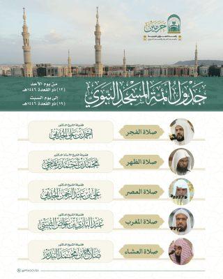 وأكدت الرئاسة أن اعتماد هذا الجدول يأتي تعزيزًا لرسالتها في توفير أجواء روحانية متميزة داخل الحرمين الشريفين، بقيادة نخبة من الأئمة المعروفين بعلمهم ومكانتهم، بما يسهم في تحقيق الطمأنينة والخشوع للمصلين وتواصل الرئاسة جهودها الدؤوبة لخدمة الزوار والمعتمرين، وتيسير أداء عباداتهم في ظل منظومة متكاملة من التنظيم والرعاية.