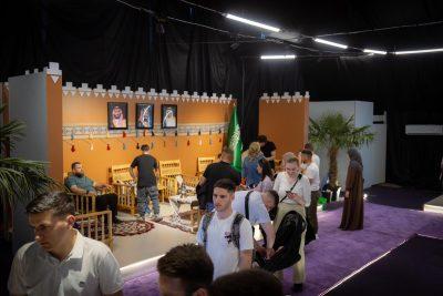 وفي جناح التصوير، اختبر الزوار بعدًا آخر من التفاعل الثقافي، بارتداء الزي السعودي التقليدي والتقاط صور أمام خلفيات تمثّل معالم المملكة التاريخية والإسلامية ، كالعلا والدرعية والحرمين الشريفين، في لحظات وُثّقت بعدسة تحمل في طياتها روح المكان والزمان.