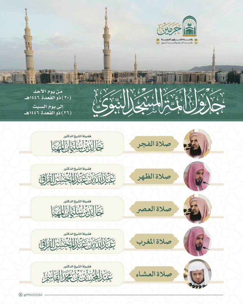 وأكدت الرئاسة أن إعتماد هذا الجدول يأتي تعزيزًا لرسالتها في توفير أجواء روحانية متميزة داخل الحرمين الشريفين، بقيادة نخبة من الأئمة المعروفين بعلمهم ومكانتهم، بما يسهم في تحقيق الطمأنينة والخشوع للمصلين.