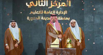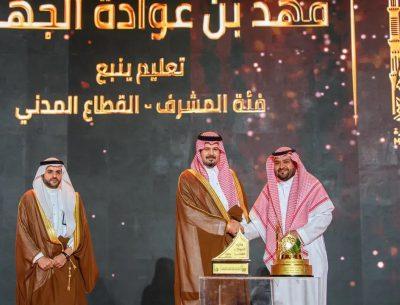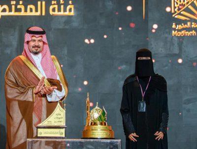 وكرّم سمو أمير منطقة المدينة المنورة الجهات والأفراد الفائزين بجائزة الأداء الحكومي المتميز، حيث حققت إدارة الأحوال المدنية المركز الأول في فرع التميز في خدمة المستفيد، تلتها في المركز الثاني مستشفى الأمير سلطان للقوات المسلحة، فيما جاءت إدارة الأدلة الجنائية في المركز الثالث، أما في فرع التميز في التنظيم المؤسسي فقد حصلت الهيئة السعودية للمدن الصناعية ومناطق التقنية “مدن” على المركز الأول، تلتها الإدارة العامة للتعليم بمنطقة المدينة المنورة في المركز الثاني، ثم جامعة طيبة في المركز الثالث، وفي فرع التميز في تنمية المحتوى المحلي أحرزت الجامعة الإسلامية المركز الأول، تلتها المياه الوطنية – القطاع الشمالي الغربي في المركز الثاني، ثم أمانة منطقة المدينة المنورة في المركز الثالث.
