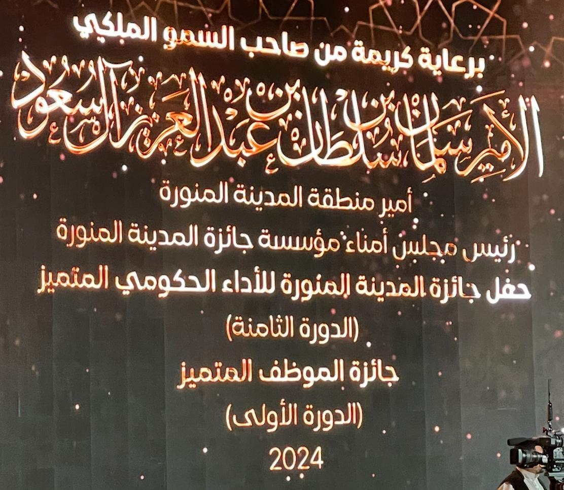 بعد أن رعى صاحب السمو الملكي الأمير سلمان بن سلطان بن عبدالعزيز أمير منطقة المدينة المنورة رئيس مجلس أمناء مؤسسة جائزة المدينة المنورة، الحفل الختامي لجائزة المدينة المنورة للأداء الحكومي المتميز في دورتها الثامنة لعام 2024م، في مركز الملك سلمان للمؤتمرات، بحضور عدد من أصحاب المعالي ومديري الإدارات الحكومية وجمع كبير من الصحفيين والإعلاميين والجمهور.
