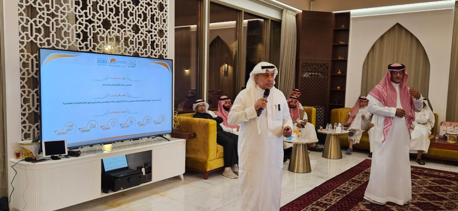 تلا ذلك عرض مرئي عن الجمعية قدمه الرئيس التنفيذي المهندس محي الدين حكمي، استعرض فيه بالأرقام أبرز برامجها المجتمعية المقدمة للأسر والأيتام ومرضى الفشل الكلوي، كما تناول استراتيجيتها الجديدة المنطلقة من رؤيتها الريادية في صناعة الأثر وتمكين المستفيدين بما يساهم في تحقيق جودة الحياة، مؤكداً القيمة المضافة للشراكة مع قطاع الأعمال، ودوره المحوري في تعزيز التنمية الاجتماعية والاقتصادية، في ظل ما يلقاه القطاع غير الربحي من دعم ومساندة من الدولة والتي برزت بوضوح في نجاحه في برامج الإسناد الحكومي.