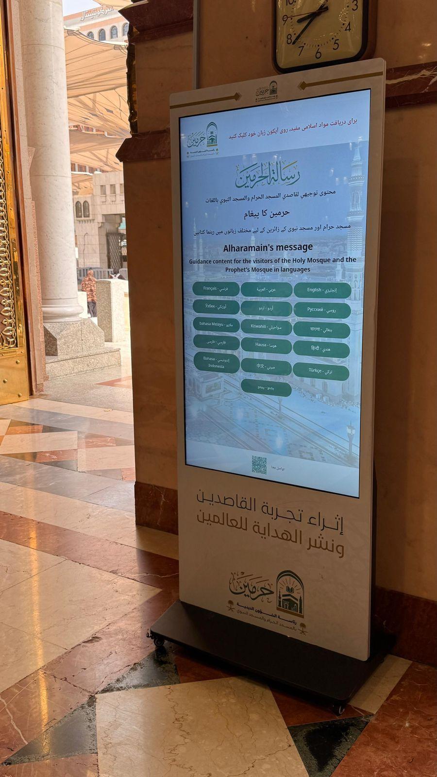 وستمكّن الشاشات التفاعلية الذكية زائرات المسجد النبوي من تصفح الكتب الشرعية، والاستفادة من الفتاوى وتحميل المحتوى الديني بعدة لغات على مدار الساعة وتدعم هذه الشاشات 19 لغة عالمية تلبية لاحتياجات الزائرات من مختلف الجنسيات.