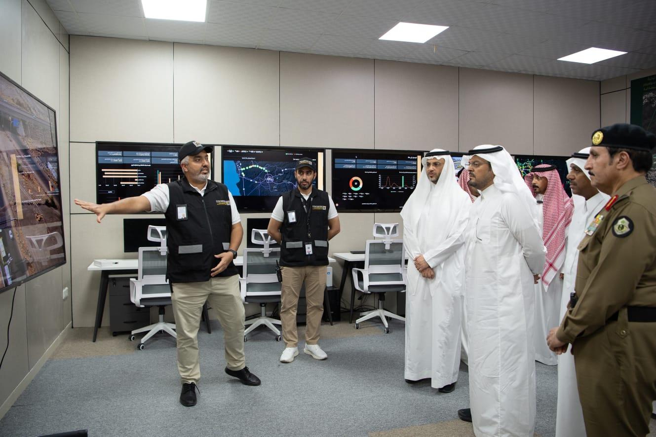 واستهل سموه الجولة في مشعر عرفات بزيارة مركز المراقبة والتحكم (OCC) التابع لكدانة، واطّلع على آلية متابعة أدوار المركز في الإشراف المستمر على تشغيل المياه والكهرباء ورصد الأعطال والبلاغات فور حدوثها وإرسال التنبيهات الفورية للفرق، إضافة إلى تحليل البيانات التشغيلية، وعرض سبل توظيف التقنيات الحديثة لتعزيز كفاءة التشغيل وسرعة الاستجابة، بما يحقق جودة الأداء في مختلف المواقع بالمشاعر المقدسة وضمان استمرار الجاهزية التشغيلية على مدار الساعة.