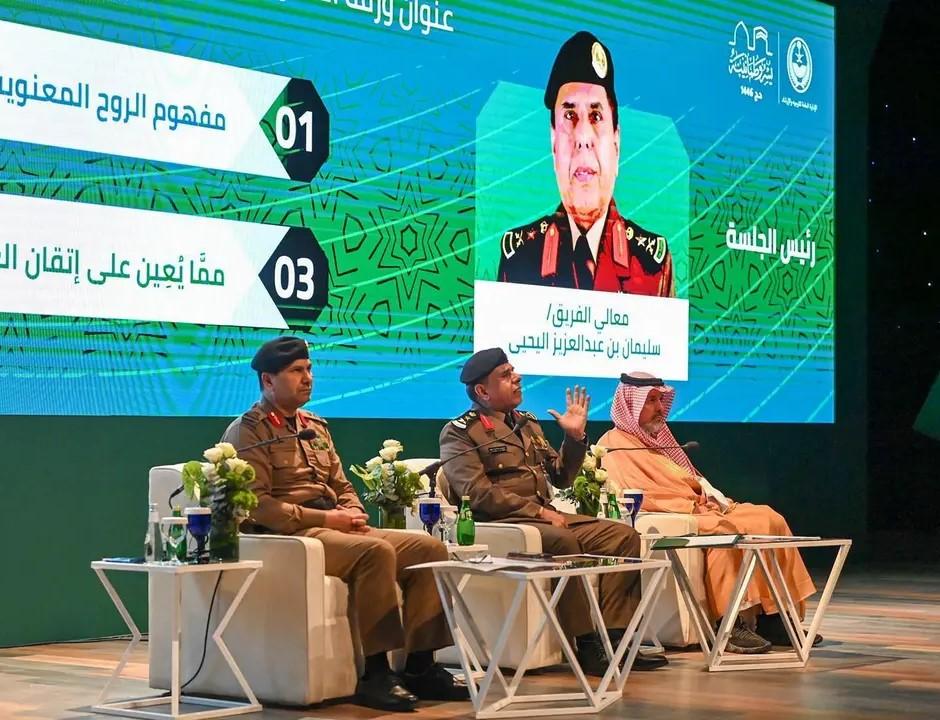 وتناولت الندوة المظاهر الإنسانية لرجال الأمن تجاه ضيوف الرحمن القادمين عبر المنافذ البرية والجوية والبحرية بمختلف جنسياتهم وأجناسهم، وتعزيز الأداء الأمني لتحقيق الالتزام بأنظمة وتعليمات الحج.