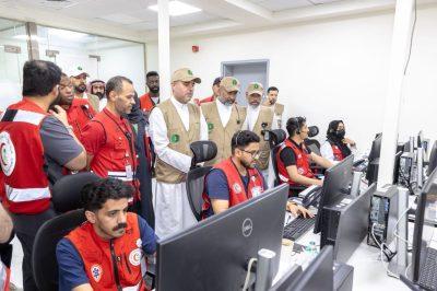 واطّلع معاليه خلال الزيارة على سير العمل في المركز، والخطط التشغيلية المعتمدة للتعامل مع البلاغات الطارئة، بالإضافة إلى جاهزية الفرق الإسعافية والتقنيات المستخدمة في متابعة البلاغات وتوجيه الفرق الميدانية خلال موسم حج 1446هـ