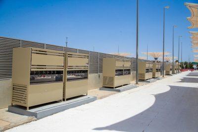 وقد تم توزيع هذه الوحدات في الساحات الخلفية للمسجد، بطريقة تضمن تكاملها مع مشروعي المظلات والرذاذ المائي (الضباب)، لتخفيف درجات الحرارة وتحسين بيئة الحجاج.