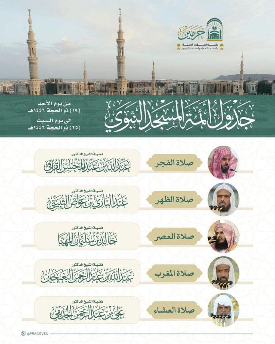 عام > الشؤون الدينية تُوضح جدول الأئمة في الحرمين الشريفين للفترة من 19 إلى 25 ذو الحجة > 5d36c9d6-0c0e-4d6d-8185-d7defb93e6b6