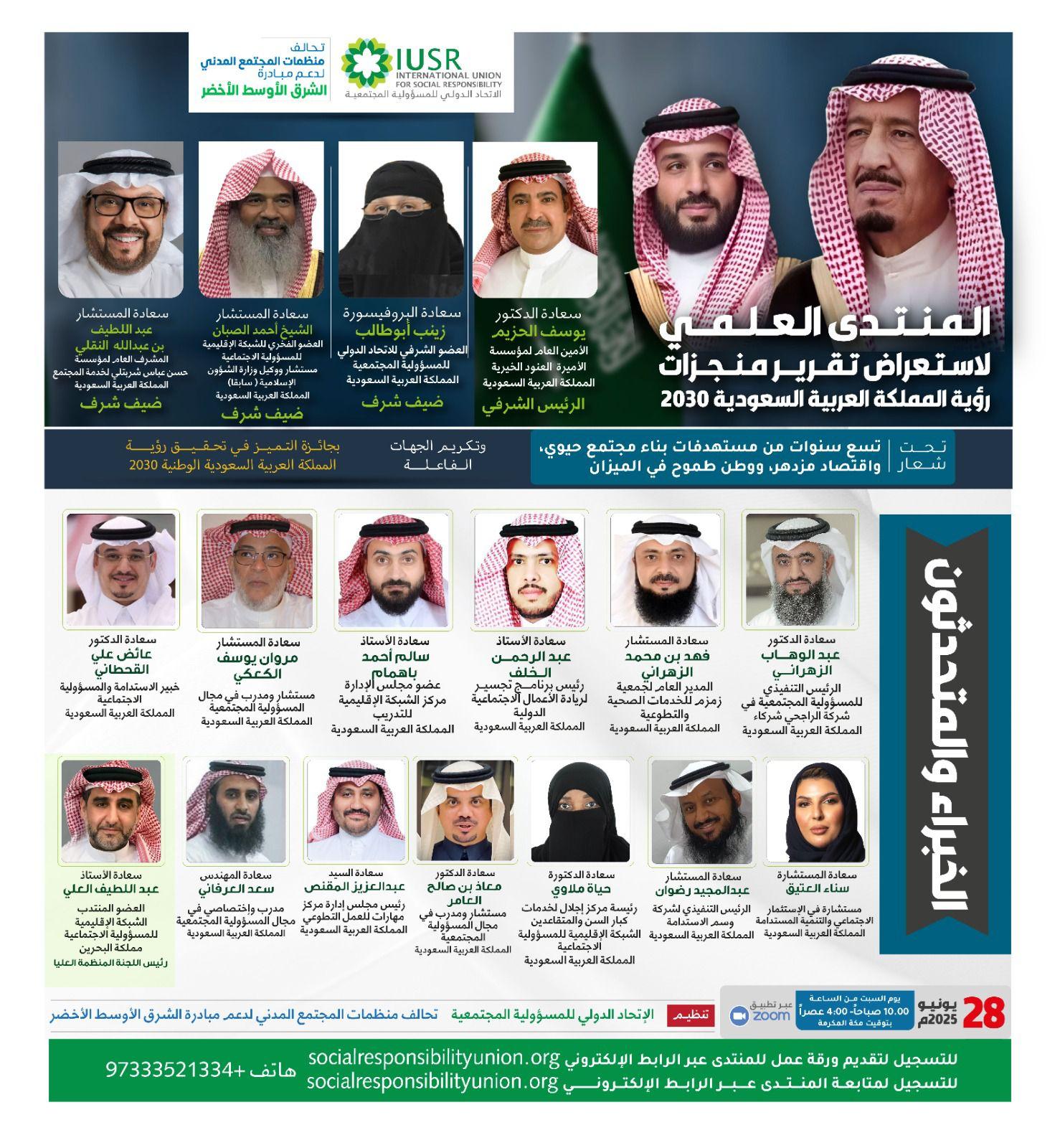 وذلك ضمن كوكبة من المتخصصين والخبراء في المسؤولية الإجتماعية وبحضور أصحاب السعادة ضيوف الشرف وتحت شعار (تسع سنوات من مستهدفات بناء مجتمع حيوي واقتصاد مزدهر ووطن طموح في الميزان).