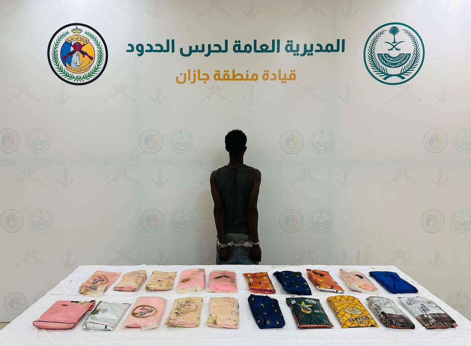 قبضت الدوريات البرية لحرس الحدود في قطاع العارضة بمنطقة جازان على مخالف لنظام أمن الحدود من الجنسية الإثيوبية، لتهريبه (21.8) كيلوجرام من مادة الحشيش المخدر، وجرى استكمال الإجراءات النظامية الأولية بحقه، وتسليمه والمضبوطات لجهة الاختصاص.