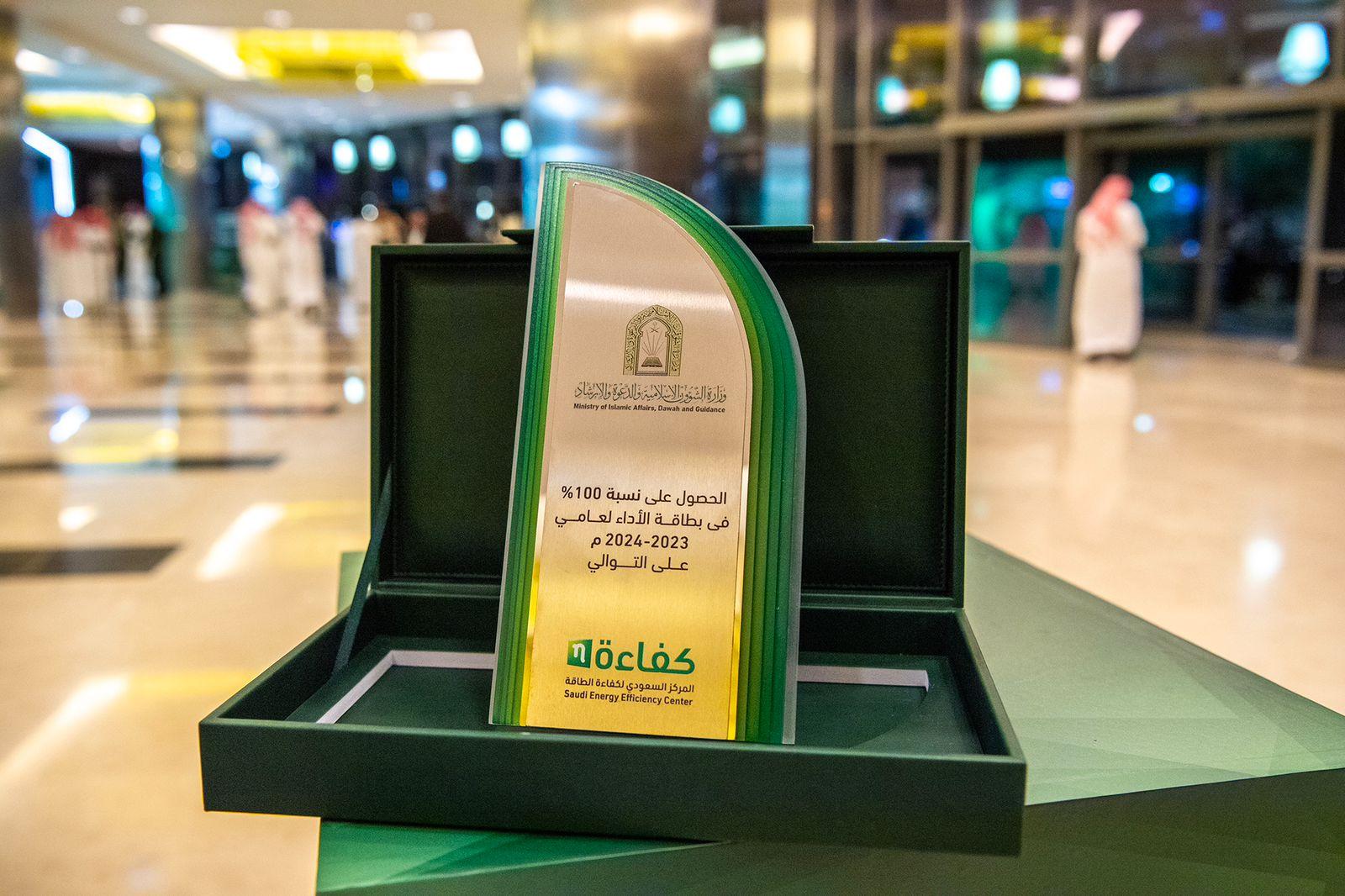 عام > ضمن سلسلة من الإنجازات المتتالية التي تحققها الوزارة على الصعيد الوطني – الشؤون الإسلامية تحقق نسبة 100٪ في بطاقة الأداء وتُكرَّم ضمن الجهات الحكومية المتميزة في كفاءة الطاقة > 91f32938-a605-467f-8e12-4c1067883873