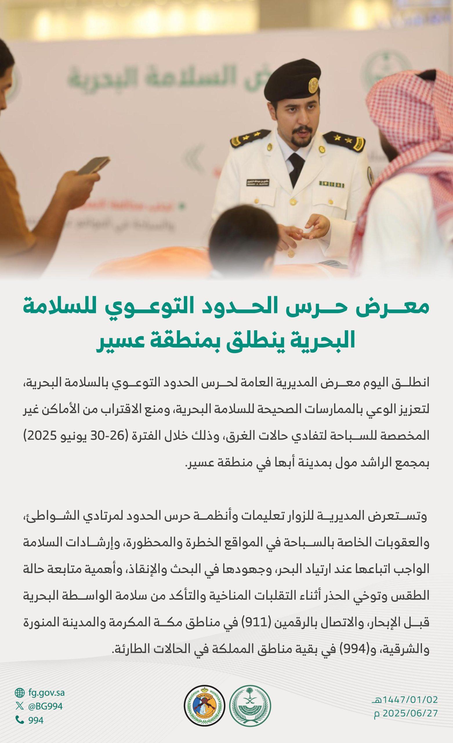 عام > معرض حرس الحدود التوعوي للسلامة البحرية ينطلق بمنطقة عسير > 6f6f102a-fe52-41af-a1c7-bf25883b623c