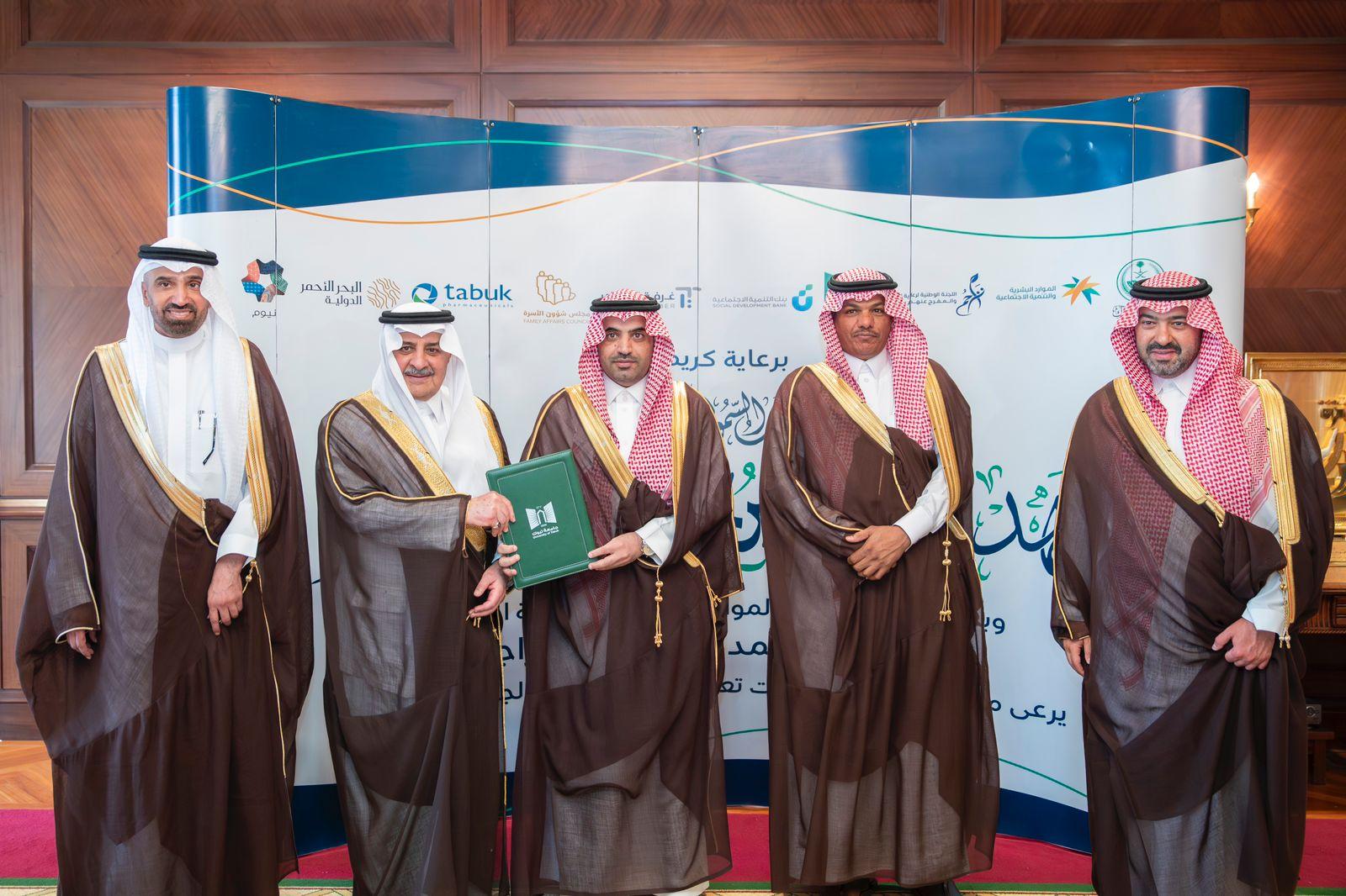 دشن صاحب السمو الملكي الأمير فهد بن سلطان بن عبدالعزيز أمير منطقة تبوك، بمكتبه بالإمارة اليوم، بحضور صاحب السمو الملكي الأمير خالد بن سعود بن عبدالله الفيصل بن عبدالعزيز نائب أمير منطقة تبوك، ومعالي وزير الموارد البشرية والتنمية الاجتماعية المهندس أحمد بن سليمان الراجحي، مبادرة بنك التنمية الاجتماعية، “جادة 30”.