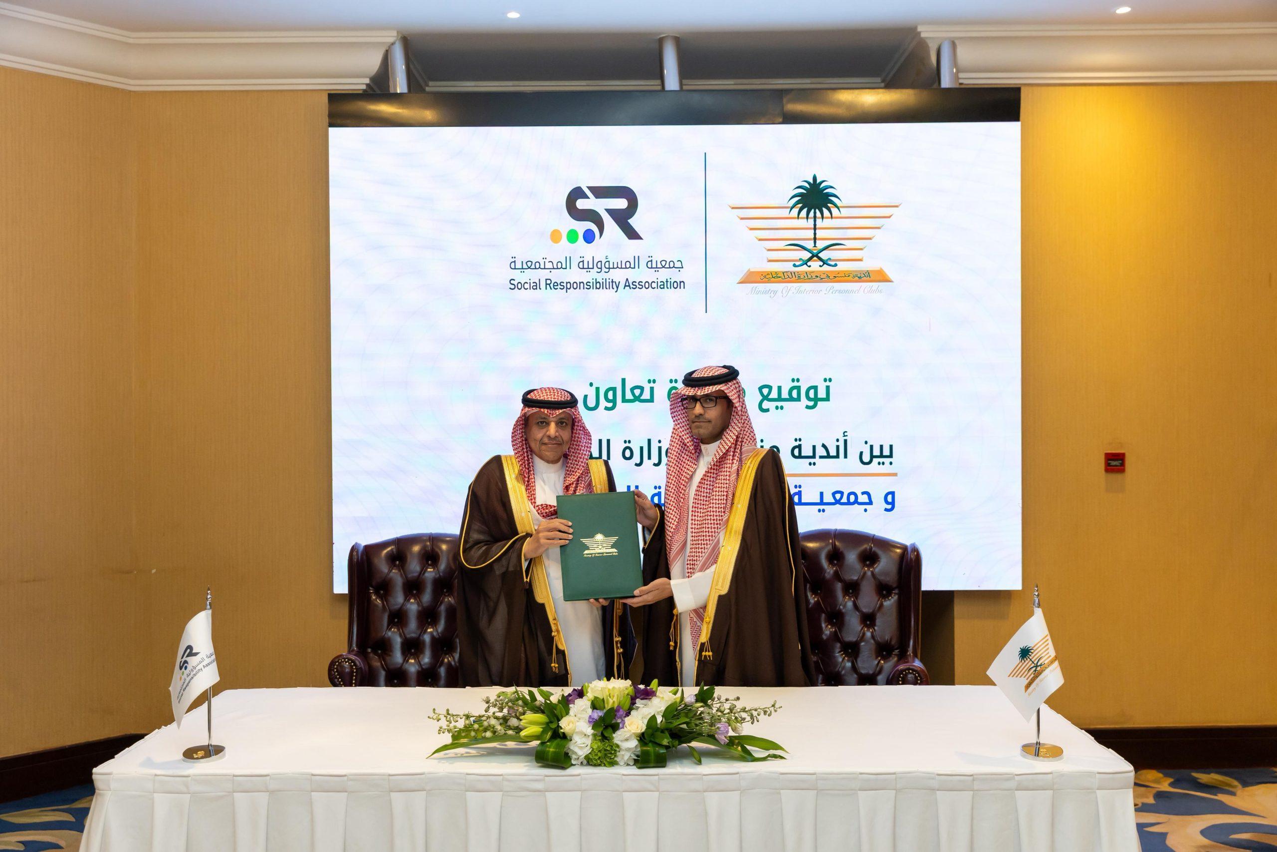وقّعت الإدارة العامة لأندية منسوبي وزارة الداخلية وجمعية المسؤولية المجتمعية، مذكرة تعاون لتعزيز الشراكات المجتمعية، ودعم مستهدفات رؤية المملكة 2030 في مجال المسؤولية المجتمعية، وذلك في مقر النادي بمدينة الرياض.
