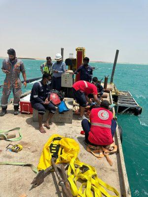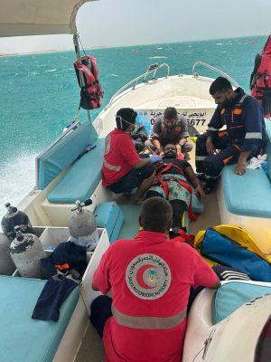 أنقذت فرق الهلال الأحمر السعودي بمنطقة جازان مصابًا في عرض البحر، وذلك إثر تلقي بلاغ من أحد المواطنين في جزر فرسان، يفيد بوجود شخص تعرّض لإصابة بالغة إثر سقوطه في محيط معدات بحرية ثقيلة أثناء تواجده في عرض البحر.