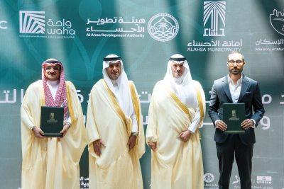 وشهد سمو محافظ الأحساء ومعالي الوزير الحقيل، توقيع أمانة الأحساء 5 عقود استثمارية بقيمة إجمالية بلغت 1.5 مليار ريال، تستهدف تنفيذ مشاريع تطويرية وخدمية تُعزّز من جودة الحياة، وتحقق الاستدامة التنموية لخدمات القطاع البلدي، وتضمنت “مشروع منتجع جبل أبو حصيص السياحي، وإنشاء مركز تقدير للسيارات، وإنشاء مركز الفحص الفني الدوري للسيارات، وتطوير مركز الملك عبدالله الحضاري، وإنشاء مصنع متخصص بالتمور بالأحساء”.