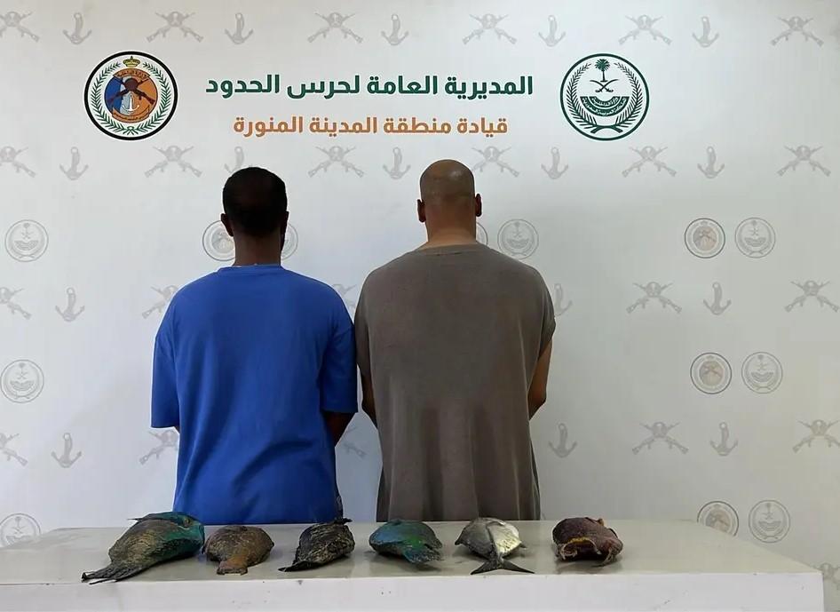 ضبطت الدوريات الساحلية لحرس الحدود في ينبع بمنطقة المدينة المنورة مواطنين مخالفين للائحة الأمن والسلامة لمزاولي الأنشطة البحرية في المناطق البحرية للمملكة العربية السعودية، وذلك لممارستهما الصيد دون تصريح، وبحوزتهما أسماك مصيدة، وتم اتخاذ الإجراءات النظامية بحقهما بالتنسيق مع الجهات المختصة.