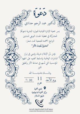 الأستاذ – سعود بن سعيد السحيمي الذي قال – يطيب لنا في جمعية الإدارة القيادية للموارد البشرية ،أن نرحب بكافة الحضور في هذا اللقاء المتميز التمكين القيادي للموارد البشرية ،وتدشين بعنوان ( تدشين يحدث الأثر ) ،والذي وضعنا من خلاله حجر الأساس لبرامج نوعية ،تعيد تعريف معايير التمكين القيادي ،وتؤسس لمرحلة جديدة من التطوير المؤسسي، وأضاف – السحيمي إننا اليوم أمام منعطف استراتيجي نستشرف فيه مستقبل القيادة الواعية، ونؤكد على أن الاستثمار في الإنسان هو الركيزة الأولى لصناعة التميز. وفي الختام أتقدم لصحيفة الكفاح نيوز بالشكر والتقدير على ما تقدمون من أخبار وتغطيات وحضور مميز.