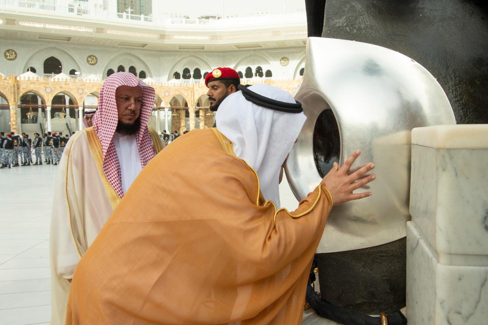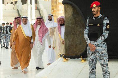 وفور وصول سموّه قام بغسل الكعبة المشرفة من الداخل بماء زمزم المخلوط بماء الورد، وذلك بتدليك جدار الكعبة المشرفة من الداخل بقطع القماش المبللة بالمخلوط، الذي يُحضّر منذ وقت مبكر من قبل الهيئة العامة للعناية بشؤون المسجد الحرام والمسجد النبوي.