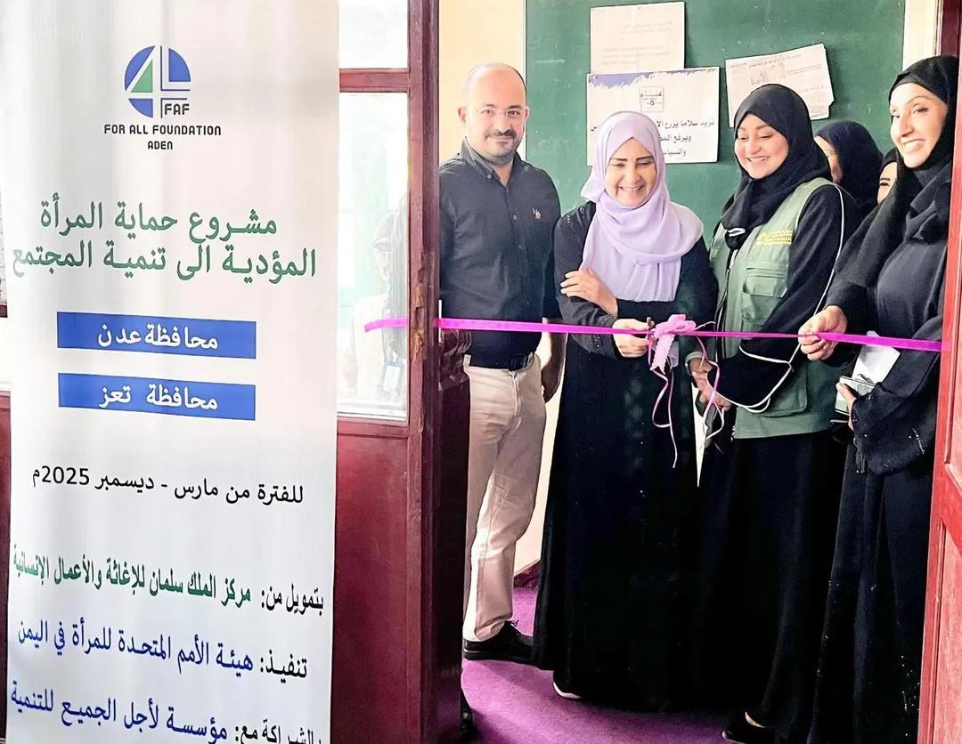 دشن مركز الملك سلمان للإغاثة والأعمال الإنسانية أمس “مشروع حماية المرأة المؤدي إلى تنمية المجتمع” في محافظة عدن، بالتعاون مع هيئة الأمم المتحدة للمرأة.