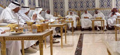 وترأس عدد من أعضاء الديوانية سعادة رئيس مجلس إدارتها، رجل الأعمال الأستاذ محمود أحمد رفيق، يرافقه لفيف من أعضاء الديوانية الثقافية وبعض أعضاء منتدى الديوانية، حيث كان في استقبالهم معالي أ.د. منصور النزهة، برفقة أبنائه وأحفاده، في مشهدٍ اتسم بالحفاوة والترحاب الذي عهد عنهم.