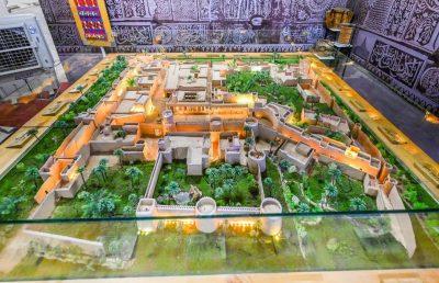 واستعرض الخزام للزوار عناصر المجسم للمعالم الرئيسية القديمة في وسط المدينة، التي تضمنت مسجد وقصر برزان، والساحة التجارية وباب الصفقات، وسوق المسحب، وباب غطاط، وباب مفرح، وشارع مدرهم، وبعض الدوائر الحكومية، مشيرًا إلى أنه اعتمد في البناء على المواد التقليدية، مثل الطين واللبن وجذوع وسعف النخيل بطريقة العروق، وكذلك الزخارف المستخدمة في ذلك الوقت، حيث وظف المواد التقليدية والنقوش التراثية القديمة في المجسم لمحاكاة الصورة التاريخية لوسط المدينة.