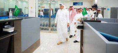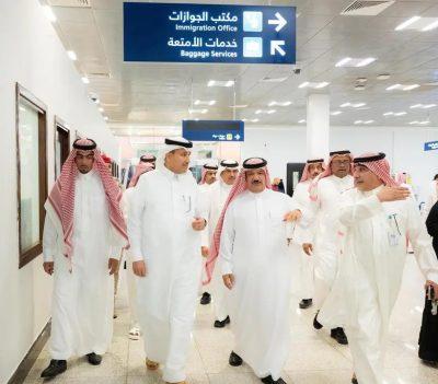 وتفقد معالي وزير النقل المرافق داخل المطار، تابع من خلالها سير الأعمال وقياس الجاهزية التشغيلية وآلية العمل، إضافة إلى أبرز التسهيلات والخدمات المقدمة للمسافرين في مرافق المطار.