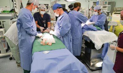 تمكن الفريق الطبي والجراحي المختص التابع للبرنامج السعودي للتوائم الملتصقة اليوم من تحقيق إنجاز طبي جديد، بفصل التوأم الملتصق السوري “سيلين وإيلين” البالغتين من العمر سنة و(5) أشهر في عملية جراحية معقدة استغرقت (8) ساعات متواصلة، وأجريت في مستشفى الملك عبدالله التخصصي للأطفال بمدينة الملك عبدالعزيز الطبية التابعة لوزارة الحرس الوطني بمدينة الرياض.