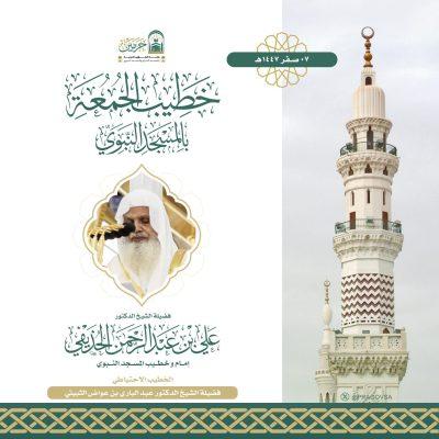 وسيتولى فضيلة الشيخ الأستاذ الدكتور ياسر الدوسري إمامة المصلين وإلقاء خطبة الجمعة في المسجد الحرام فيما يخطب ويؤم المصلين في المسجد النبوي فضيلة الشيخ الدكتور علي الحذيفي.