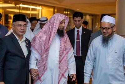 وكان في استقبال فضيلته لدى وصوله مطار كوالالمبور الدولي، سعادة سفير خادم الحرمين الشريفين لدى ماليزيا الأستاذ مساعد بن إبراهيم السليم، وعدد من أعضاء السلك الدبلوماسي بالسفارة، ومن الجانب الماليزي معالي وزير الشؤون الإسلامية الدكتور محمد نعيم مختار، وعدد من كبار المسؤولين في الرئاسة الدينية.