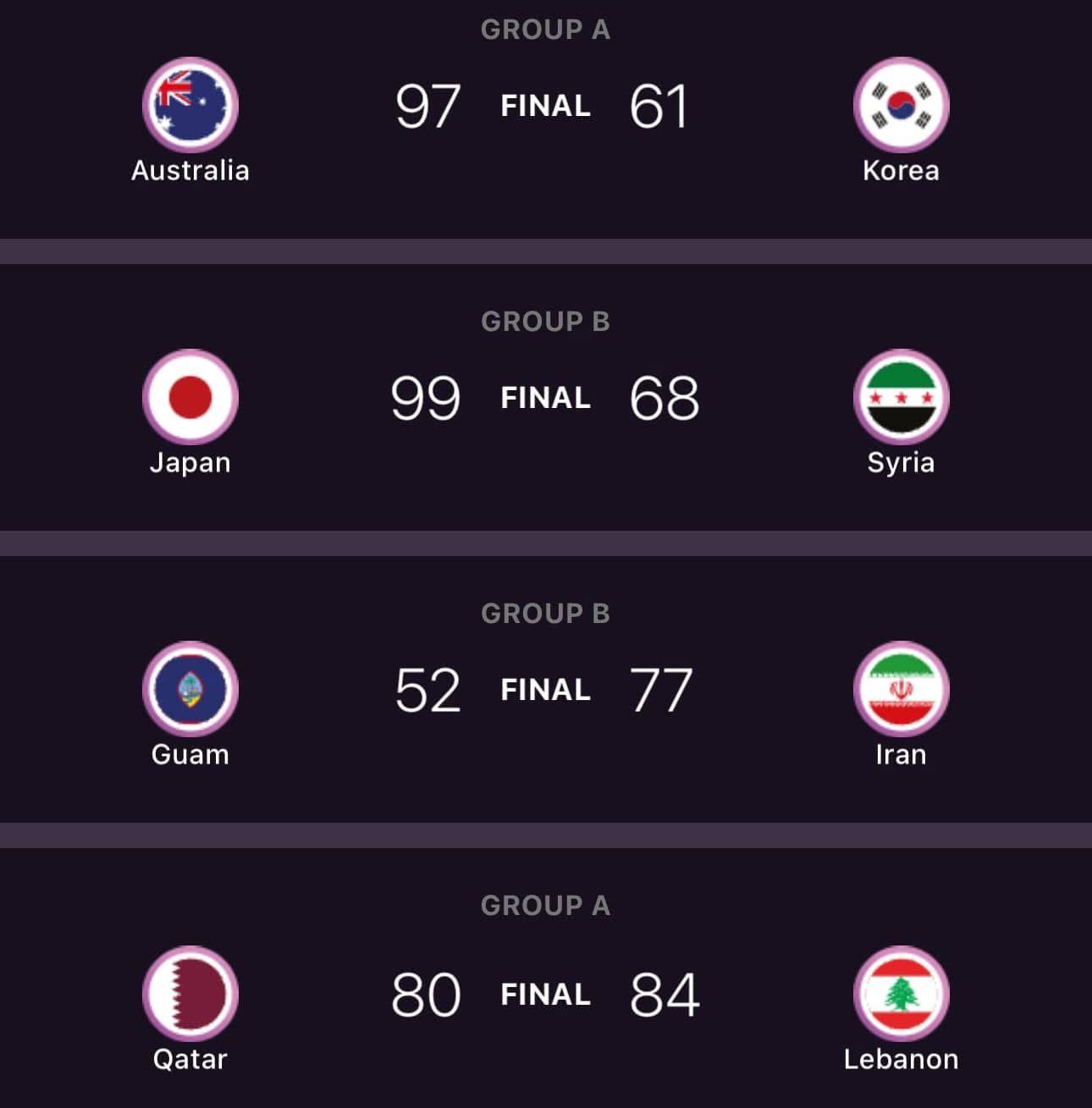 نتائج مباريات اليوم الثاني من بطولة اسيا لكرة السلة المقامة هذه الأيام في محافظة جدة ، مع مباريات اليوم الخميس كالتالي.
