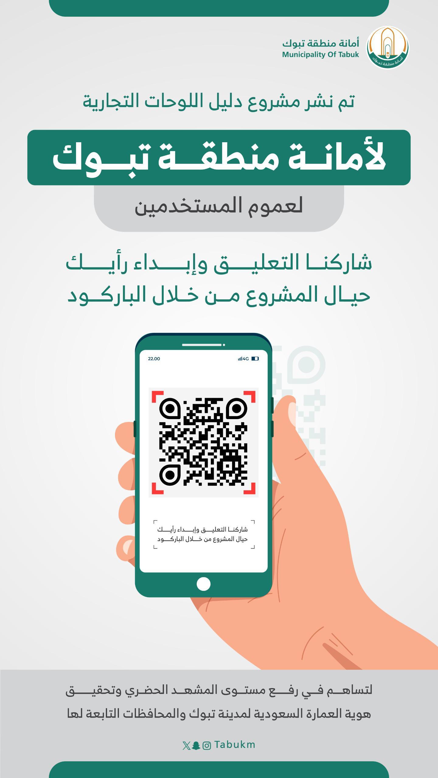 https://istitlaa.ncc.gov.sa/ar/Municipality/tabukm/Commercial وذلك لتحسين الخدمات البلدية بما يتوافق مع تطلعات سكان المنطقة وزوارها من المواطنين والمقيمين.