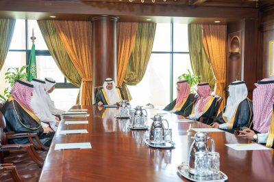 رأس أمير منطقة تبوك، الأمير فهد بن سلطان بن عبدالعزيز بمكتبه بالإمارة اليوم، الاجتماع الدوري للمحافظين، بحضور وكيل إمارة المنطقة محمد بن عبدالله الحقباني والوكلاء المساعدين ومحافظي المحافظات.